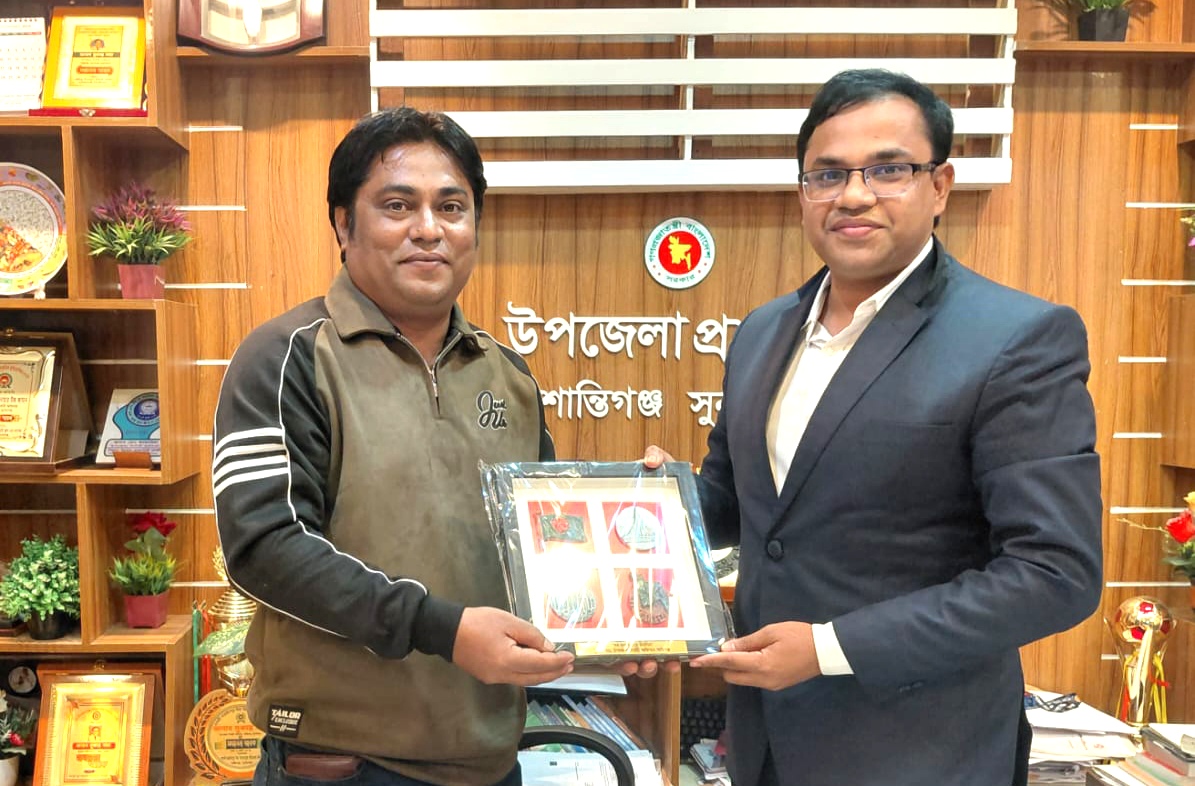 মঙ্গলবার (২ ডিসেম্বর) বিকাল ৩টায় উপজেলা নির্বাহী কর্মকর্তা সুকান্ত সাহা শান্তিগঞ্জ উপজেলার ৮টি ইউনিয়নের মধ্যে গ্রাম আদালতের কার্যক্রমে শ্রেষ্ঠত্ব অর্জন করায় চেয়ারম্যান লুৎফুর রহমান জায়গীরদার খোকনের হাতে উপজেলা প্রশাসনের পক্ষ থেকে বিশেষ সম্মাননা স্মারক তুলে দেন।