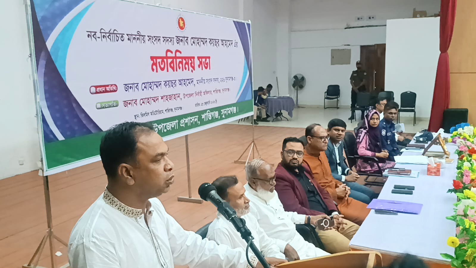 শান্তিগঞ্জ উপজেলা-এ নবনির্বাচিত সংসদ সদস্য মোহাম্মদ কয়ছর আহমেদ-এর সঙ্গে উপজেলা প্রশাসনের মতবিনিময় সভা অনুষ্ঠিত হয়েছে। সোমবার(২৩ ফেব্রুয়ারী) সকাল ১১টায় উপজেলা প্রশাসনের আয়োজনে ঝিলমিল অডিটোরিয়ামে এ সভা অনুষ্ঠিত হয়।