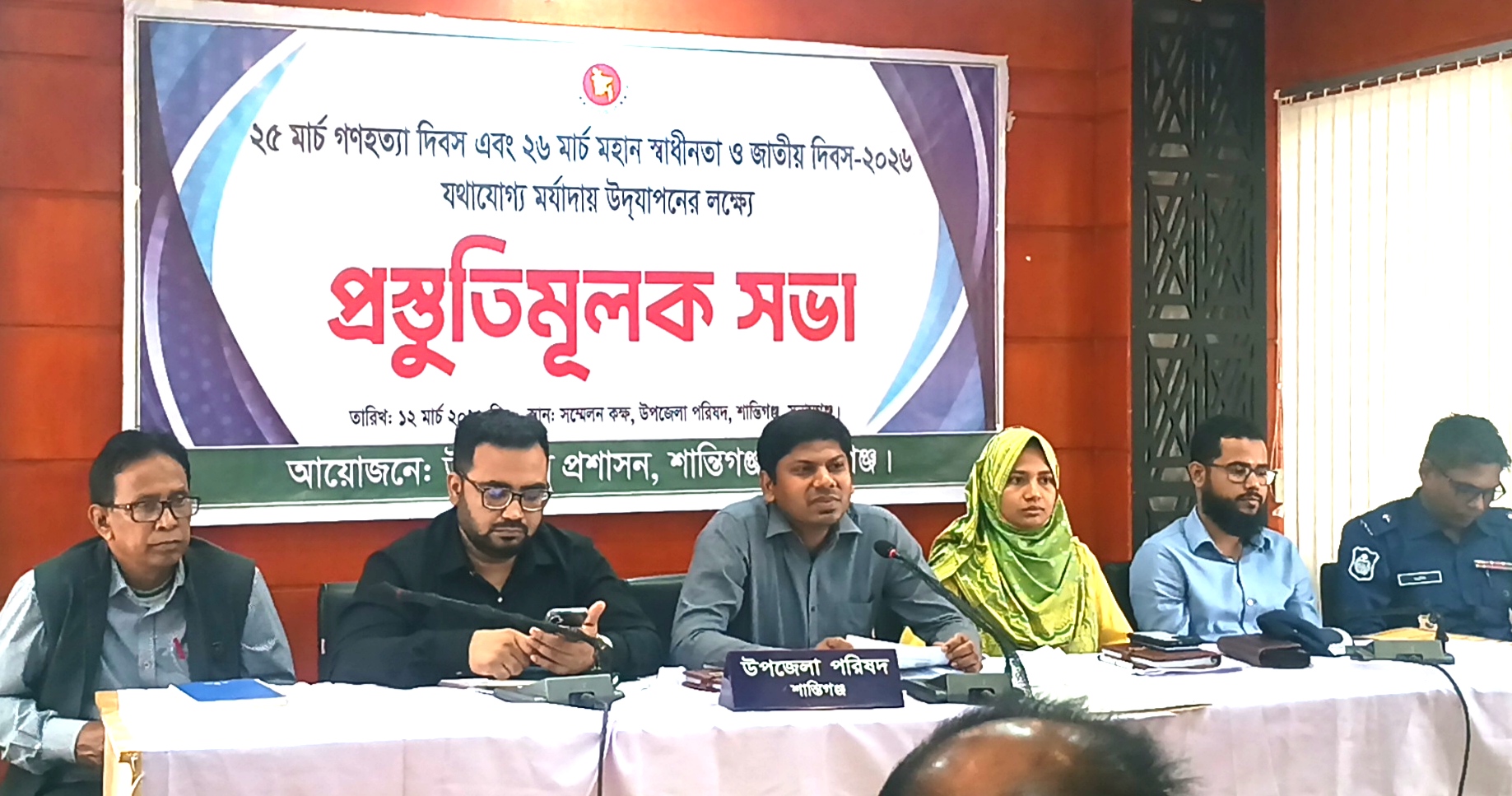 ২৫ মার্চ গণহত্যা দিবস এবং ২৬ মার্চ মহান স্বাধীনতা ও জাতীয় দিবস যথাযোগ্য মর্যাদায় উদযাপন উপলক্ষ্যে প্রস্তুতিমূলক সভা অনুষ্ঠিত হয়েছে। বৃহস্পতিবার (১২ মার্চ) দুপুর ১২ টায় উপজেলা পরিষদের সম্মেলন কক্ষে অনুষ্ঠিত সভায় সভাপতিত্ব করেন শান্তিগঞ্জ উপজেলা নির্বাহী অফিসার মোহাম্মদ শাহজাহান ।