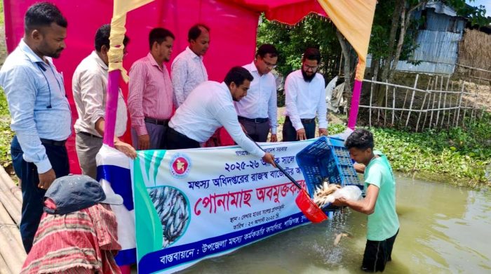 শান্তিগঞ্জ(সুনামগঞ্জ) প্রতিনিধি:: সুনামগঞ্জের শান্তিগঞ্জে রাজস্ব বাজেটের আওতায় ২০২৫-২৬ অর্থ বছরে দেখার হাওরের প্লাবনভূমি ও ৩টি প্রাতিষ্ঠানিক পুকুরে বিভিন্ন প্রজাতির ৫শত কেজি পোনামাছ অবমুক্ত করা হয়েছে। বুধবার (২৭ আগস্ট) সকাল ১১
